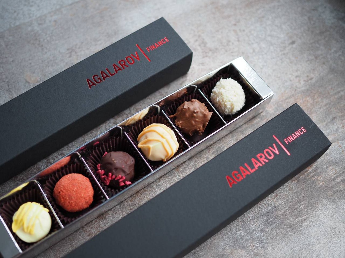 Офисная канцелярия, ежедневники, календари — стандартные носители логотипа🤨. Они полезны, но редко вызывают эмоции. Их убирают в стол или передаривают. Эмоциональной связи не возникает. Альтернативный инструмент — тактильный и вкусовой опыт👍. На фото☝️ — набор трюфелей ручной работы для компании Agalarov Finance. Это не просто конфеты, а точка контакта с брендом. Такой инструмент решает конкретную задачу: формирует неформальную лояльность партнеров и клиентов. Он не несет прямой информации о ваших услугах, но эффективно работает на репутацию.