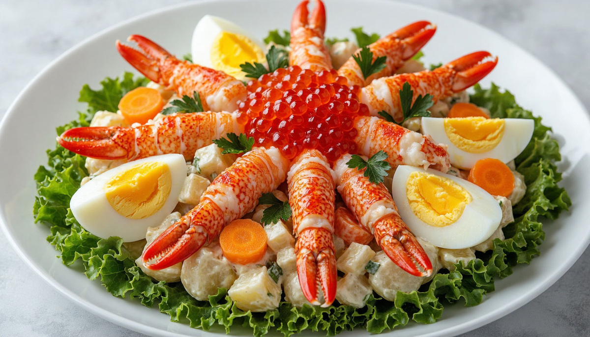 Привет, дорогие гурманы. Подготавливайте заметки и блокноты, чтобы переписать себе уникальные рецепты, которые урасят ваш новогодний стол изобилием салатов. Они точно станут вашей основной закуской на праздничном столе. Итак поехали. 1. Не просто Оливье, а Оливье с раковыми шейками и красной икрой. Итак основные ингредиенты у него останутся прежними за исключением варёной колбасы, Вместо неё мы добавим нежные мягкие раковые шейки, а верхужку украшаем слоем красной икры. Зелёный горошек, картофель, морковь, огурец всё нарезаем кубиком как обычно, всё смешиваем как обычно с добавлением майонеза. 2. Сельдь под шубой слоями в виде завёрнутого рулета. Кажется классическая селедка под шубой, но как это будет удобно завернуть её в рулет и нарезать дольками в виде роллов. Как же приготовить такое вкусное чудо. Расстилаем пищевую плёнку, разравниваем по неё тонкий слой тёртой, варёной свеклы, этот слой будет играть ключёвую роль, внутри него будет вся начинка. Следующий слой будет картофе