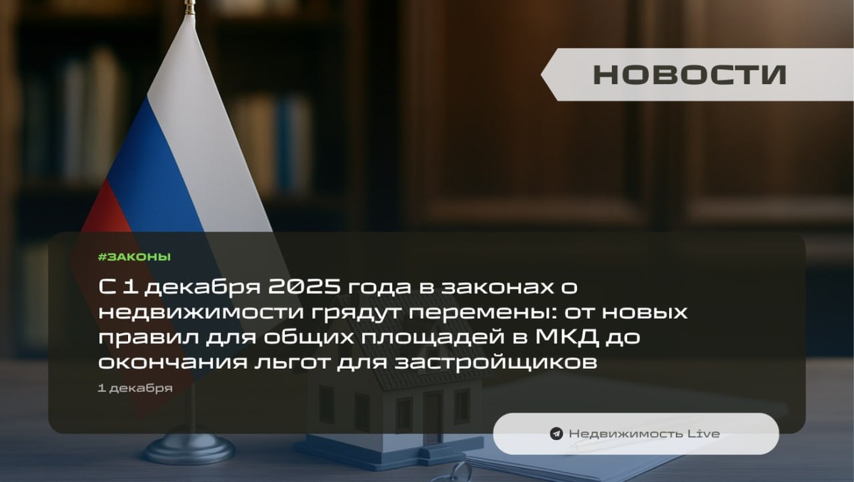 ⚡️ С 1 декабря 2025 года в законах о недвижимости грядут перемены: от новых правил для общих площадей в МКД до окончания льгот для