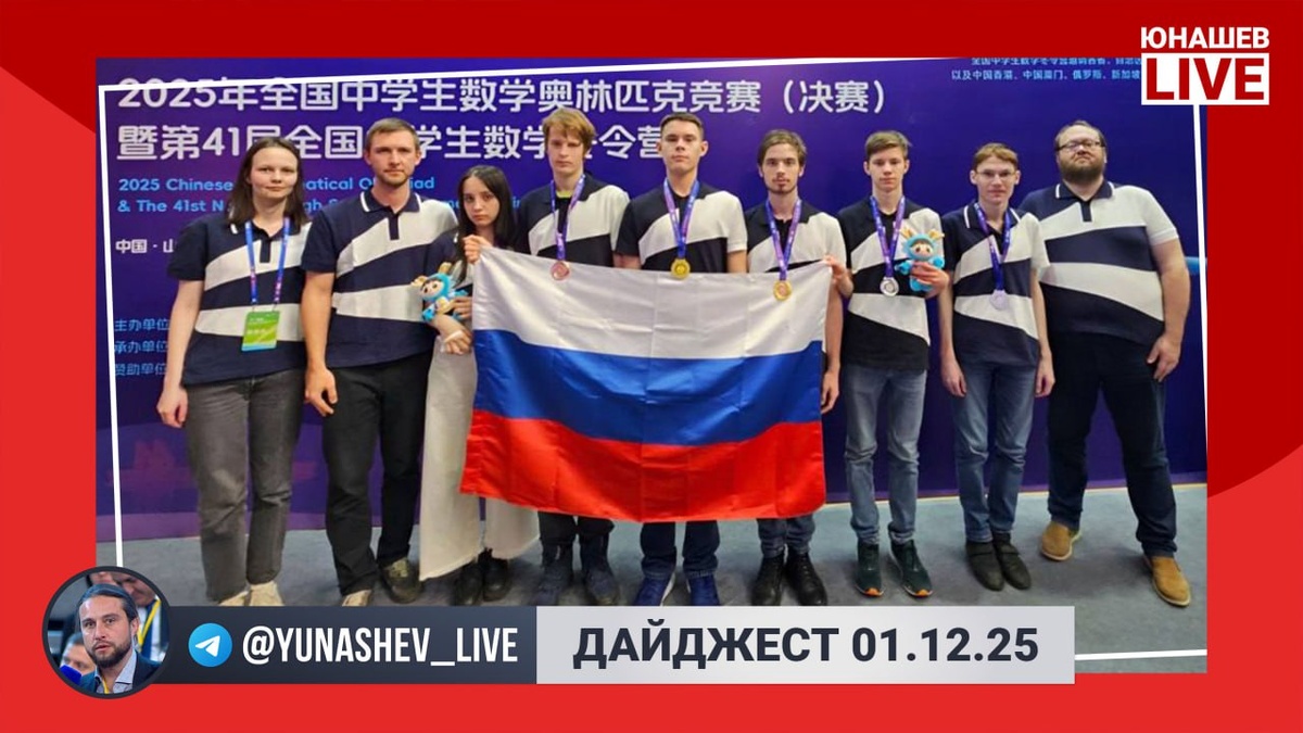 Уже завтра пройдёт встреча Владимира Путина со спецпосланником США Стивом Уиткоффом — важный эпизод в решении всего украинского кейса. Буду внимательно следить за этим. А пока закончим понедельник традиционным дайджестом главных новостей дня: ▪️Путин провёл встречу с директором ФСИН Гостевым. Из самого важного: по словам Гостева, в российских колониях сократилось число осуждённых, что связано с «гуманизацией уголовной политики». По последним открытым данным, их количество сократилось с 433 тыс. осуждённых на 1 января 2023 года до 313 тыс. человек к 1 января 2025-го. ▪️Россия и Саудовская Аравия подписали межправительственное соглашение о взаимной отмене виз. Безвиз начнёт действовать уже в начале 2026 года. Ещё одно направление для отдыха. ▪️Русские школьники завоевали шесть медалей на международной олимпиаде по математике в Китае: два золота, три серебра и одна бронза. Наши ребята, как всегда, лучшие. Поздравляю! ▪️Правительство не поддержало законопроект о запрете мигрантам перев