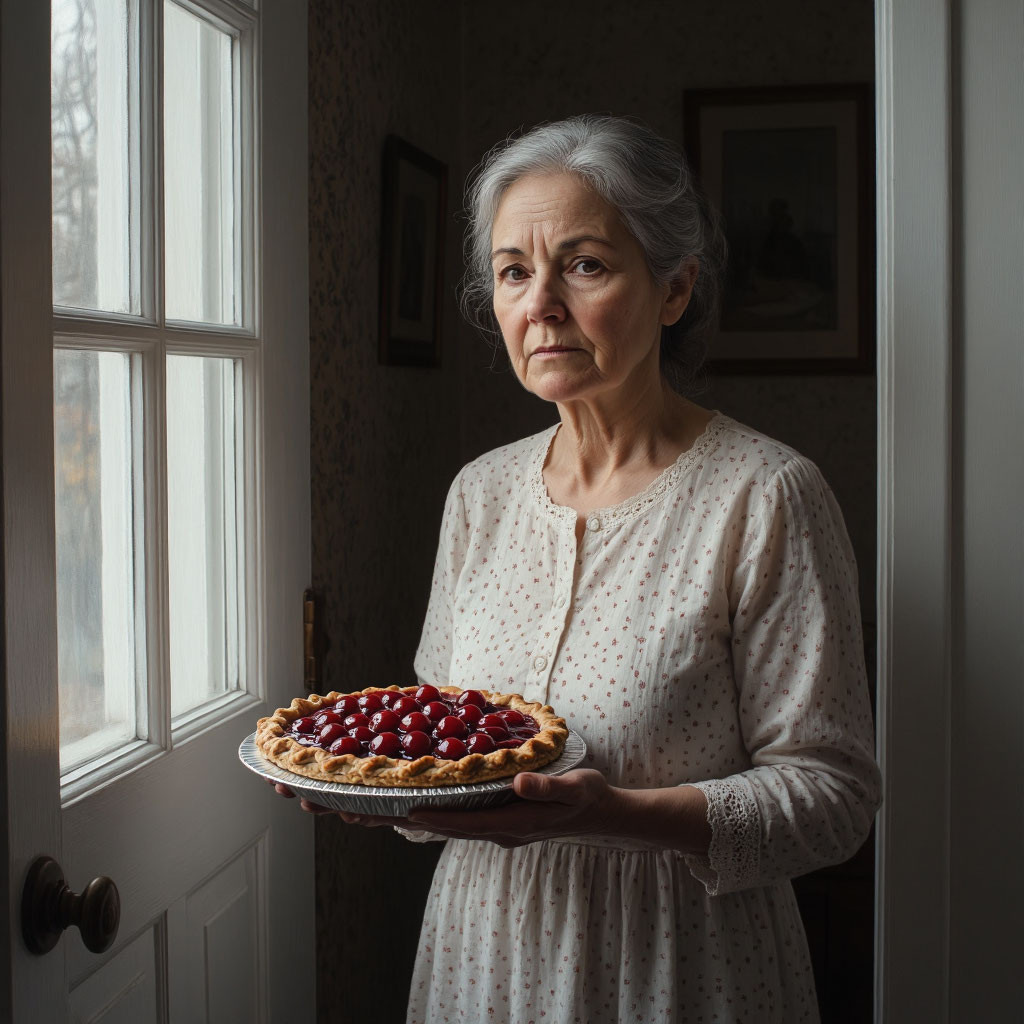 Это началось с пирога. Вкусного, с вишней, из которого на белую салфетку сочился тёмно-красный сок. Его принесла новая соседка, бабушка Алевтина Петровна, через неделю после того, как вселилась в квартиру напротив, в ту самую, что пустовала после смерти старого Алексея Васильевича. «Я одна, вы молодая семья, вам силы нужны», — улыбнулась она мне на площадке. Улыбка была светлой, но глаза не улыбались. Они были как два стакана чистой, холодной воды: всё видно, но на дне – ничего. Алевтина Петровна вписалась в наш дом стремительно и тихо, как лекарство, которое капают по капле. Она стала «своей». Кормила кота, когда мы задерживались. Присматривала за коляской, пока я выбегала за почтой. Её история была простой и горькой: дети в другом городе, не навещают, одиночество, маленькая пенсия. Мы, соседи, прониклись. Я приносила ей лишний суп, муж помогал с мелким ремонтом. Она платила благодарностью и историями из молодости, где всё было честно и ясно. А потом её сын «попал в беду». Нужен бы