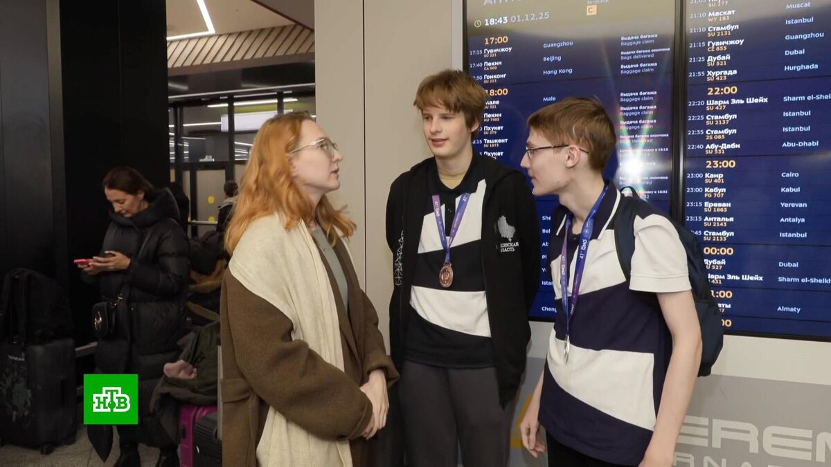 [ Смотреть видео на сайте НТВ ] На родину сегодня вернулась российская сборная, которая завоевала шесть медалей на национальной математической олимпиаде в Китае. Россияне получили две золотых, три серебряных и одну бронзовую награду. В числе призеров — ребята из Москвы, Подмосковья, Татарстана и Челябинской области. Преподаватели говорят, что задания были сложные, но наши школьники были готовы ко всему. Для россиян этот турнир стал тренировочным перед выступлением на международной математической олимпиаде, которая состоится в июле в Шанхае. [ Смотреть видео на сайте НТВ ]