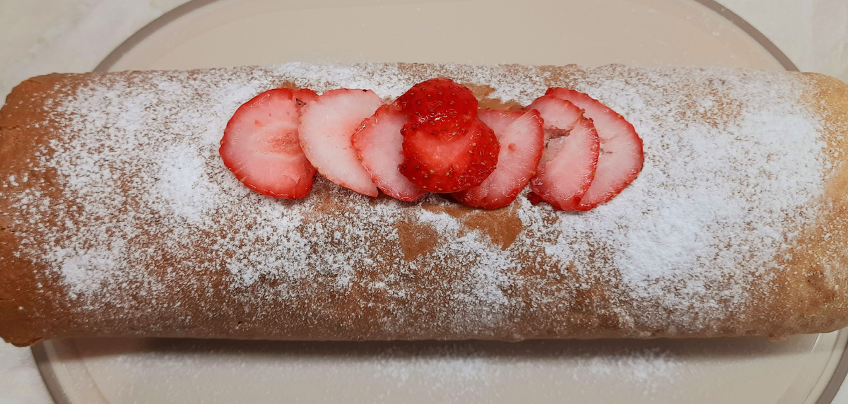 Ну что, сегодня испечем рулет к чаю с минимальными вложениями. Уровень сложности- новичок. Нам понадобится: 6 яиц Щепотка соли 180гр.сахарного песка 200гр.муки (просеять) 1ч.л.соды(без горки) 1ч.л.меда (можно без) 1ч.л уксуса 9% Отделяем белки от желтков, добавляем щепотку соли, и начинаем взбивать миксером до "пиков". Постепенно добавляем песок, при этом продолжаем взбивать до полного растворения песка. Затем, гасим соду уксусом, плюс мёд, и добавляем к взбитым белкам. Продолжая взбивать, в массу из яиц и песка вводим по 1 желтку. Затем, просеянную муку , постепенно вводим в тесто. Перемешиваем , аккуратно лопаточкой, миксером уже не работаем. Тесто получается как густая сметана, с множеством пузырьков. Выливаем тесто на противень, застеленный хорошей пергаментной бумагой. Запекаем в духовке при 185гр. 15мин. Вот такую красоту достаем из духовки. Теперь, действуем быстро! Переворачиваем наш бисквит на чистый лист пергамента. А тот лист пергамента на котором он пёкся а