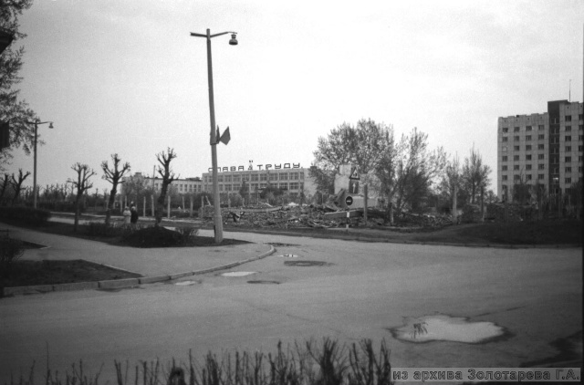 Это фотография из советского прошлого Озерска. Старый добрый атомград, а тогда в декабре на городских улицах всегда лежал снег. А тут лужи, ну явно же не 3 декабря).