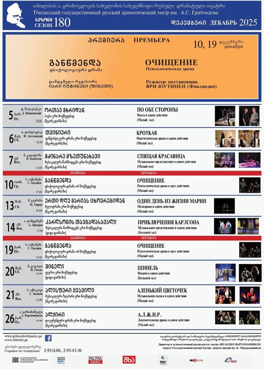 Репертуар Тбилисского русского театра им. Грибоедова на декабрь: