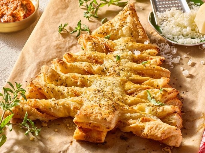 Слоёная «Ёлочка» из теста Тесто бездрожжевое слоеное - 680 гр. Сыр творожный (Кремчиз) - 120 гр. Сыр Российский - 80 гр. Соус Песто - 64 гр. Яйцо куриное - 60 гр. Соль - 4 гр. Перец черный молотый - 1.6 гр. пошаговый рецепт на cookhelp.ru #простыерецепты #требуетвремени #изсыра #рецепты #cookhelp