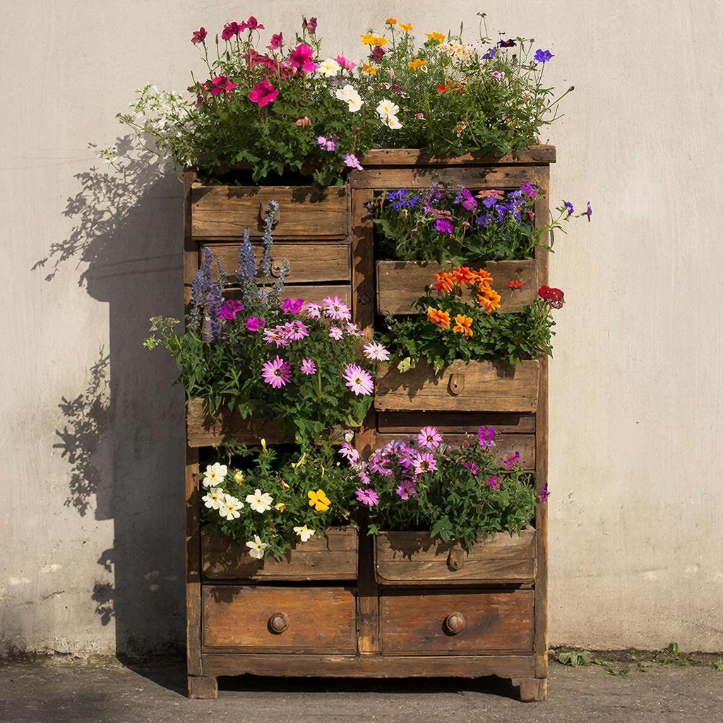 Вертикальная клумба из комода: как преобразить старую мебель в цветущий сад