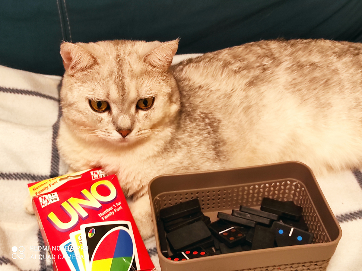 Котик предложил играть в uno и в домино