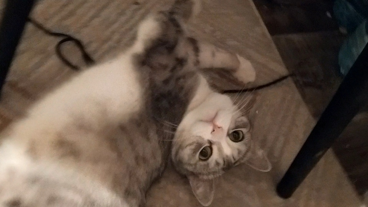 Тигра наигралась и, вся тёплая, отдыхает. Ждёт ужин. Он уже скоро. Дала себя потискать немного и лениво уползла от меня, хватаясь за коврик. Ссылка на видео в ОК: