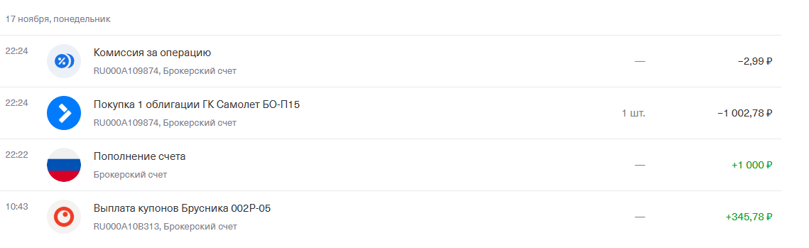 Всем доброго времени суток. Сегодня понедельник, 1 декабря. Наконец поступил последний купон и можно подвести итоги за предыдущие 2 недели и ноябрь в целом. Теперь детальнее по дням. 17 ноября, понедельник 18 ноября, вторник 19 ноября, среда 20 ноября, четверг 24 ноября, понедельник 25 ноября, вторник 26 ноября, среда 27 ноября, четверг 28 ноября, пятница 29 ноября, суббота 30 ноября, воскресенье 1 декабря, понедельник Таким образом ноябрь 2025 закрылся на 100% и превысил предыдущий месяц на 247,68 рублей. Стоимость портфеля составляет 230 263 рублей. Из которых 788,76 рублей в деньгах. Эти деньги пока не реинвестировал, потому что 31.12 спишется налог на доход за год. Сколько у меня получилось покажу в конце месяца. Пока думаю как буду закрывать эту сумму. В последнее время немного изменил тактику пополнения, стал пополнять чаще и меньшими сумма (что видно на скриншотах за предыдущие дни). Посмотрю будет ли так эффективнее. (Не является инвестиционной рекомендацией)