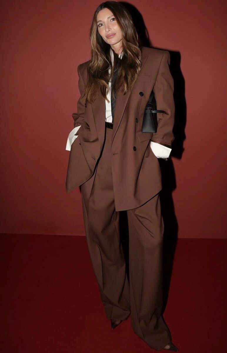 В формах костюма пайетки смотрятся сдержаннее, чем в платьях, — это хороший компромисс.