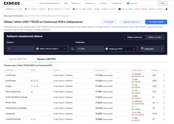 Офлайн криптообменники Хабаровска остаются одним из самых безопасных способов работать с цифровыми активами, будь то покупка USDT или обмен криптовалюты в Хабаровске. Рынок постепенно развивается, появляются новые офисы с профессиональными менеджерами и прозрачными условиями, что делает процесс обмена комфортным и надежным. Для удобного выбора и проверки репутации точек стоит использовать сервис мониторинга Exnode, который собирает актуальные данные о контактных данных, направлениях обмена и отзывах пользователей.