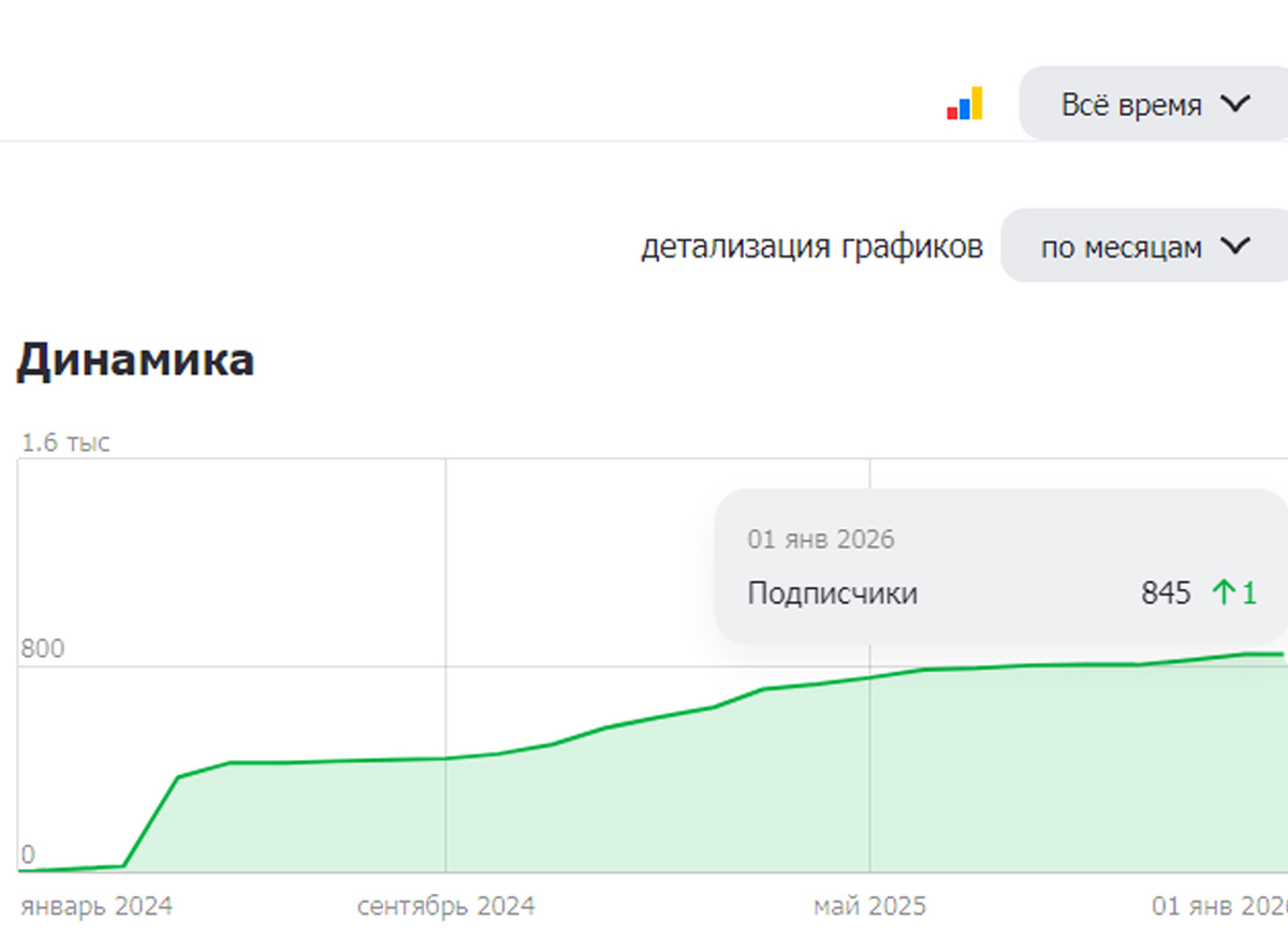 Сейчас у моего канала примерно 800 подписчиков. Добавилось за последний год около трехсот. Кто-то подписывается, кто-то отписывается. Количество всё время меняется. Но, увы, активных из них 100-400 человек судя по прочитыванию статей. Очень благодарна мои постоянным подписчикам! Без вашего внимания и поддержки я бы наверное уже забросила канал. Все же писать статьи не такое простое дело. Нужно время и энтузиазм. И с тем и другим у меня проблемы.