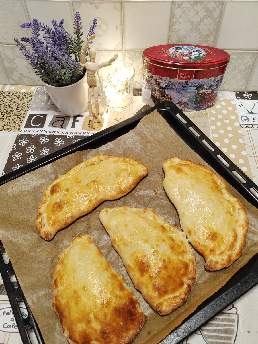 Хоть и нет снега, но за окном календарная зима. А значит пришло время печь пирожки 🥧 Приготовление теста: Мука - 400 гр Разрыхлитель - 1 ст.л. Соль - 0,5 ч.л. Маргарин - 120 7гр Яйцо - 1 шт. Кефир - 1 стакан Замесить тесто и убрать в холодильник на 30 минут. Подготовить начинку. Я отварила картошку, поджарила репчатый лук и потерла сулугуни. А можно и отварное мясо, и ветчину с сыром, и капусту потушить. Вариантов много 😀 Налепить полукруглые пирожки и смазать их взбитым яйцом. Выпекать 20 минут при температуре 200 градусов