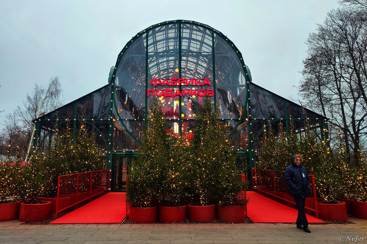 Начался фестиваль "Зима в Москве". Говорят, работает 400 площадок по всему городу. Ближайшая ко мне расположена на Болотной площади, она же Репинский сквер. Павильон напоминает волшебную фабрику с конвейером и станцией упаковки подарков. Я побывала в первый день, к счастью народу было мало. Пространство оформлено в красных тонах, все двигается, вращается, ездят корзины с подарками. Все сверкает, елочки во всех углах. Красивенько. В этой зоне больше товаров для детей: маскарадные костюмы и просто одежда, игрушки, игры, книжки. Меня покорила деревянная серия. Представьте, мороженое в вафельном стаканчике из дерева, пачка масла из дерева, пакет молока из дерева. Но не уверена, что дети такое оценят. Здесь косметика, аксессуары и декор. На полках много разных лошадок, ведь 2026-й считается годом лошади. Попадаются действительно симпатичные вещицы, но не бюджетно, конечно. В центральной части павильона находится сердце фабрики - конвейер. Его можно обойти вокруг, подлезть под не