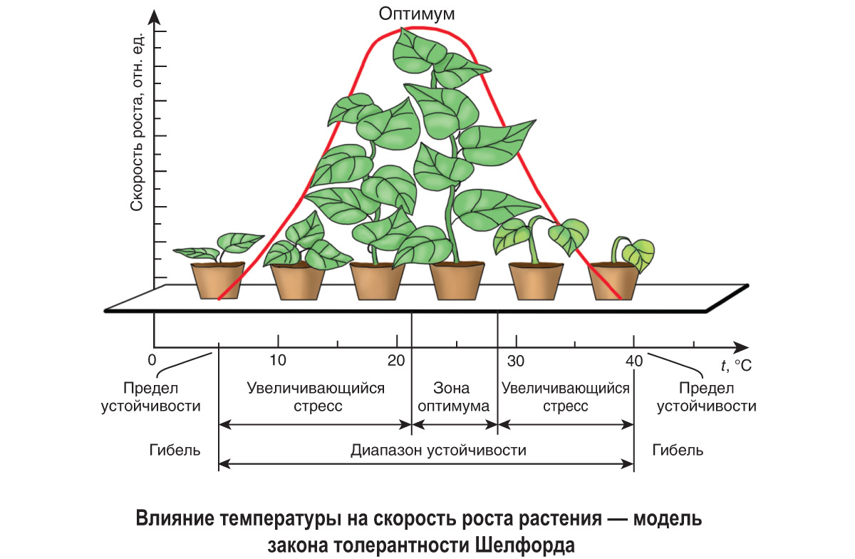 Закон толерантности для температурного фактора растений можно изобразить так: