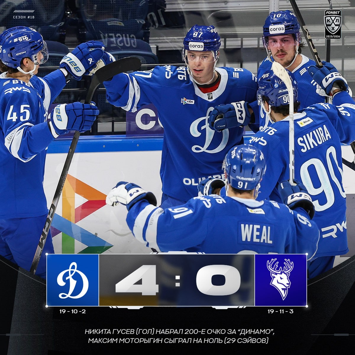 🔵 Московское «Динамо» завершило домашнюю серию второй подряд «сухой» победой! #ФонбетКХЛ