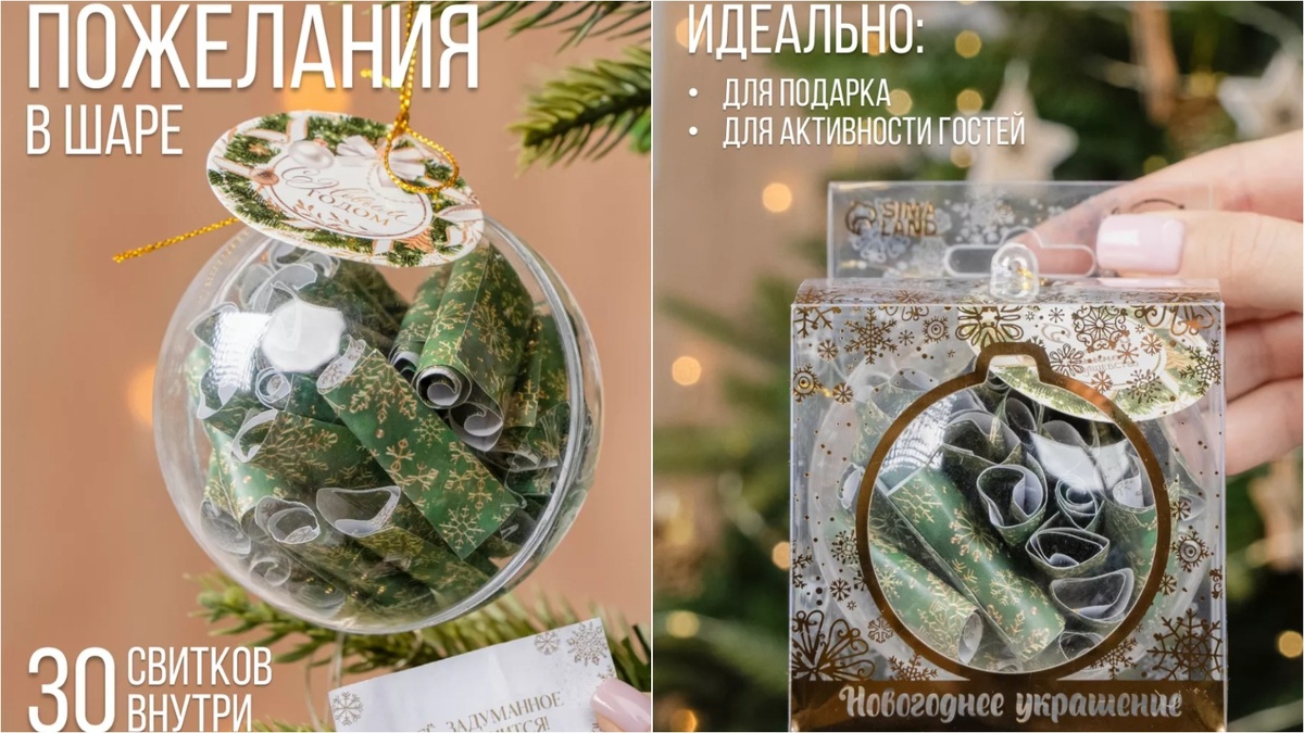 1. Новогодняя подарочная елочная игрушка-шар с предсказаниями.