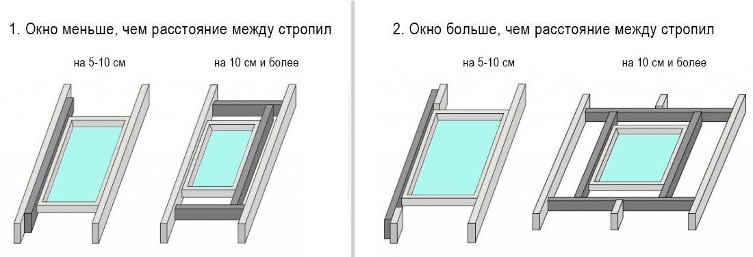 — Что делать, если расстояние между стропилами небольшое и поместится только маленькое окно?