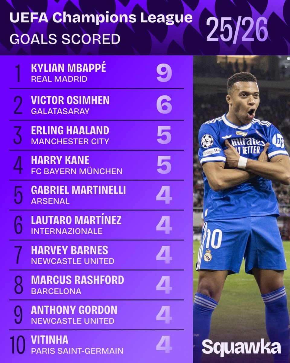 🇪🇺 Список лучших бомбардиров текущего розыгрыша ЛЧ