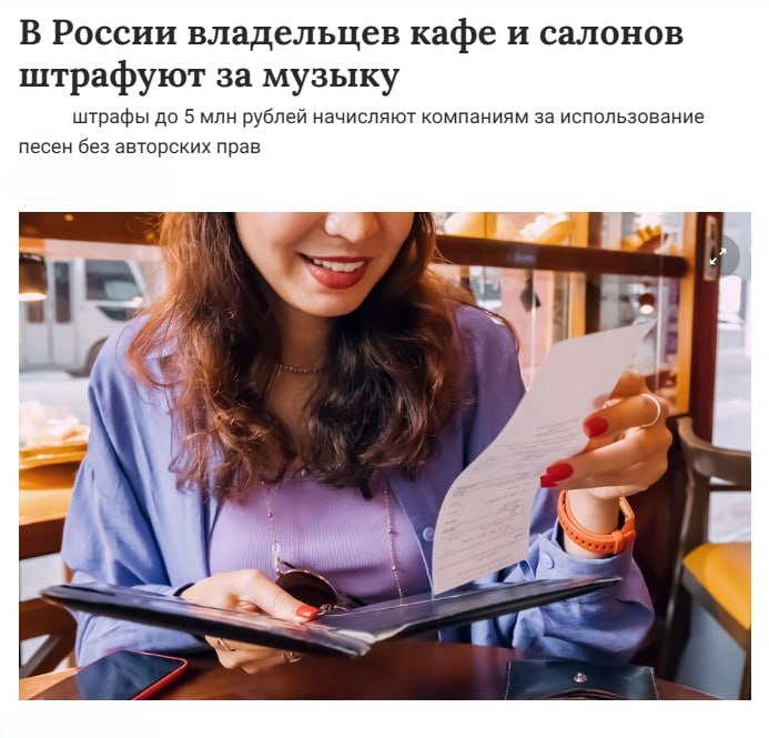 ⚡️ Многотысячные штрафы начали получать владельцы кафе, салонов красоты и частных клиник по всей России за использование фоновой музыки