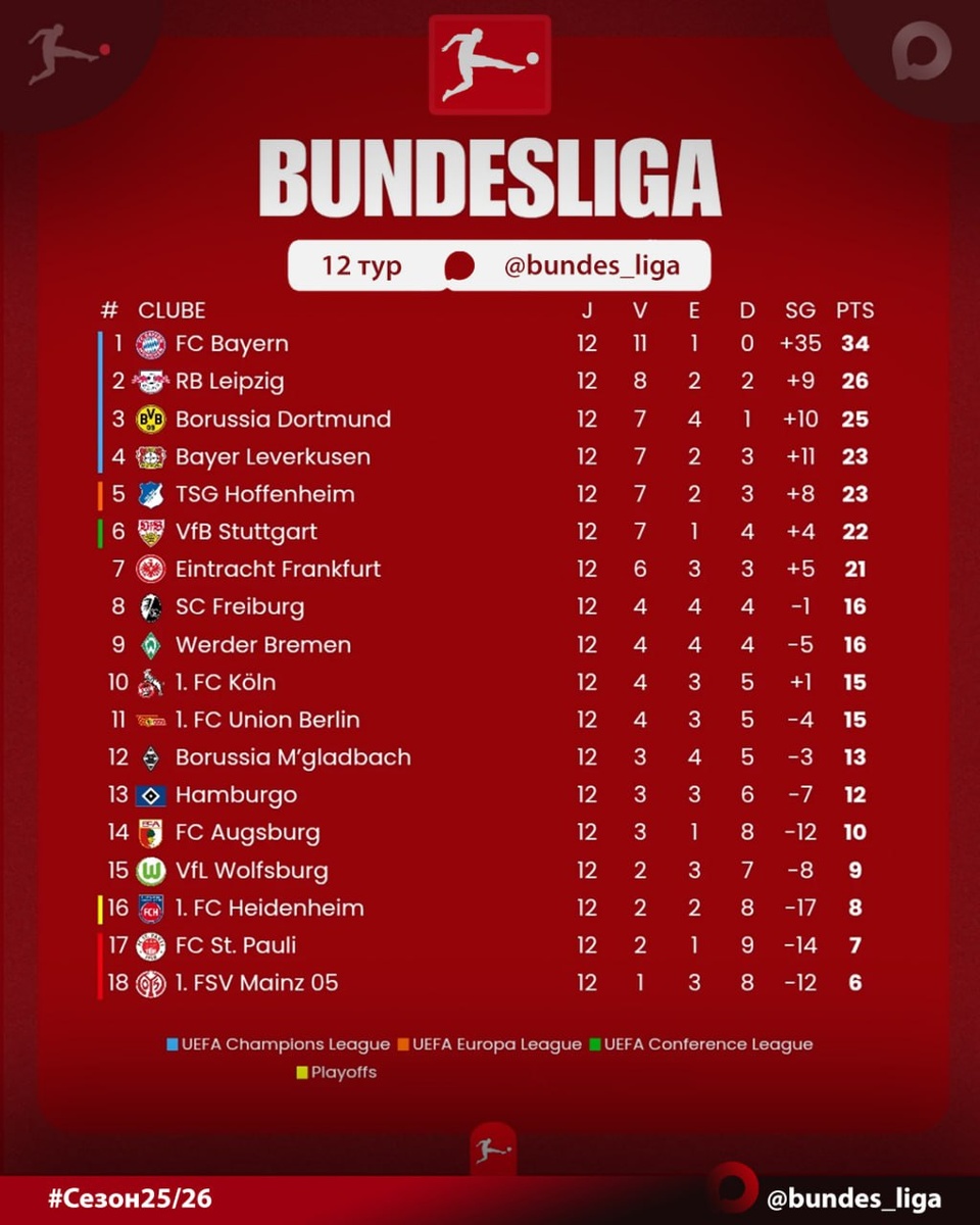 #Бундеслига ⚽️ Результаты 12 тура + Таблица