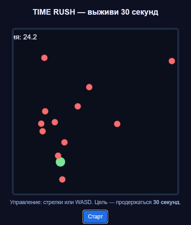 Небольшие игровые проекты вроде Time Rush помогают увидеть HTML с другой стороны. Они позволяют лучше понять, как браузер реагирует на события, как обновляется изображение, что такое игровой цикл и как происходит связь между HTML и JavaScript.