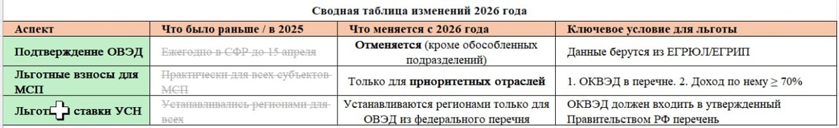 Сводная таблица изменений