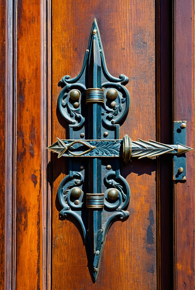 Дизайн кованой фурнитуры — это язык, на котором металл рассказывает историю. Каждый узор и изгиб способен преобразить пространство, задав ему нужный тон. Классическим примером является петля-стрела, чей вытянутый и заостренный силуэт является не просто функциональной деталью, а мощным визуальным акцентом. Этот декоративный элемент идеально подходит для ворот и массивных дверей, подчеркивая их монументальность и создавая атмосферу средневековья.