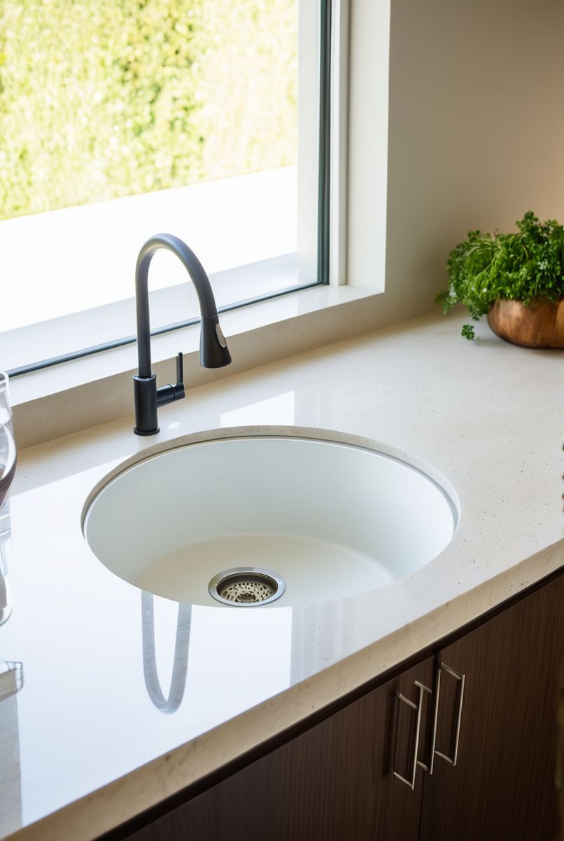 Круглая кухонная мойка, это выбор, сочетающий эргономику и стиль. Преимущества: безопасность и лёгкость ухода. Основные недостатки: её вместительность часто уступает аналогам. Функциональность важна для любого дизайна кухни.