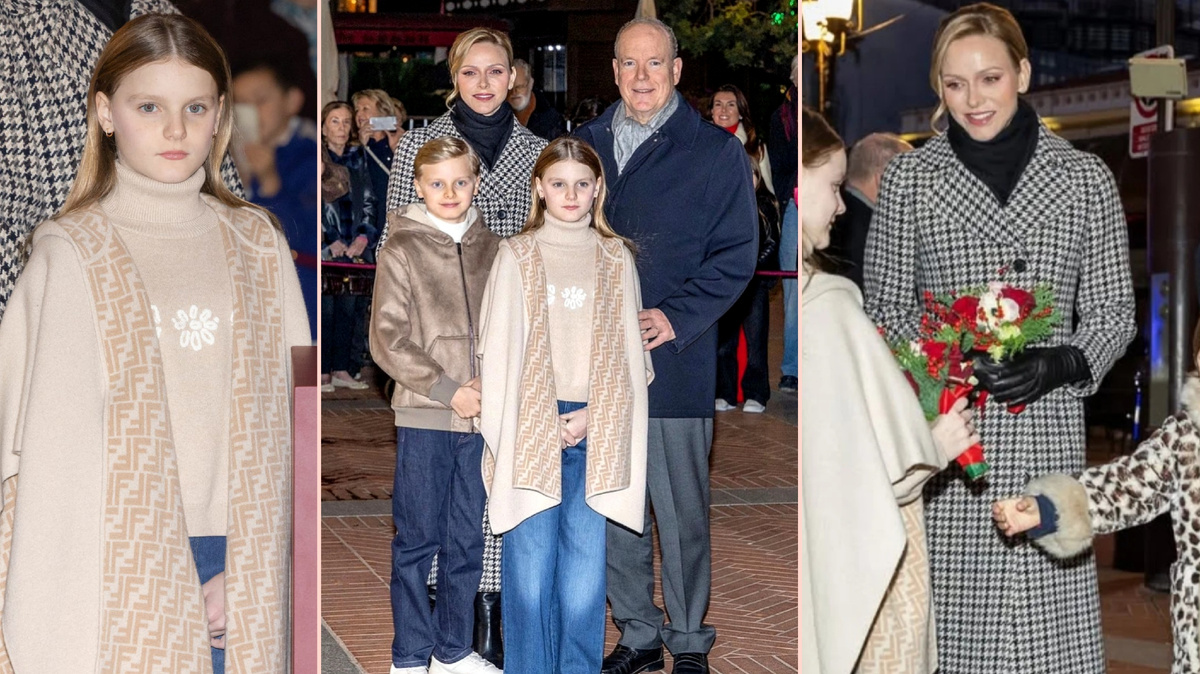 Князь и княгиня Монако взяли своих детей на праздничную семейную прогулку, чтобы торжественно открыть рождественскую иллюминацию страны. Родители одели своих 10-летних близнецов Жака и Габриэллу в одинаковые бежевые наряды. Принц надел по этому случаю верхнюю одежду от Emporio Armani. Но если и был детский наряд, изобилующий роскошью, то это был наряд принцессы Габриэллы, начиная с двустороннего пончо Fendi, которое привлекло всеобщее внимание. Она сочетала его с джемпером с высоким воротником и белыми вышитыми цветами от Chloé. Завершили образ джинсы и ботинки. В свои 10 лет девочка уже обещает стать настоящей иконой стиля, как и все женщины семьи Гримальди. Они нажали на кнопку, официально зажигая городские огни с большого дерева на рыночной площади — Place du Marché La Condamine — в присутствии большой толпы людей. Любящая мать, Шарлен, одетая в пальто с узором "гусиная лапка" и кожаные сапоги, сияла и аплодировала своим детям. Альбер также улыбался, позируя для фо