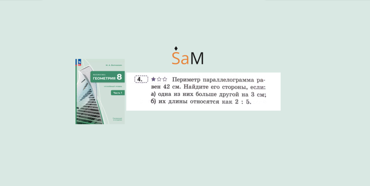 Обратите внимание, что на ютуб выкладывается только часть видео, не весь контент! Периметр параллелограмма равен 42 см. Найдите длины его сторон, если: а) одна сторона больше другой на 3 см; б) стороны относятся как 2 : 5. Для дальнейшего развития канала и публикаций бесплатного контента ставьте лайк, в топ, палец вверх и подписывайтесь! Спасибо всем, кто уже это сделал! #sam #параллелограмм #волчкевич #8класс #учебник #гдз