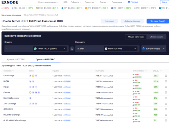 Чтобы обмен криптовалюты был безопасным и прозрачным, важно использовать проверенные сервисы и соблюдать пошаговую инструкцию. Ниже показан пример работы с официальным обменником криптовалюты в России, используя платформу Exnode для мониторинга надежных обменников.