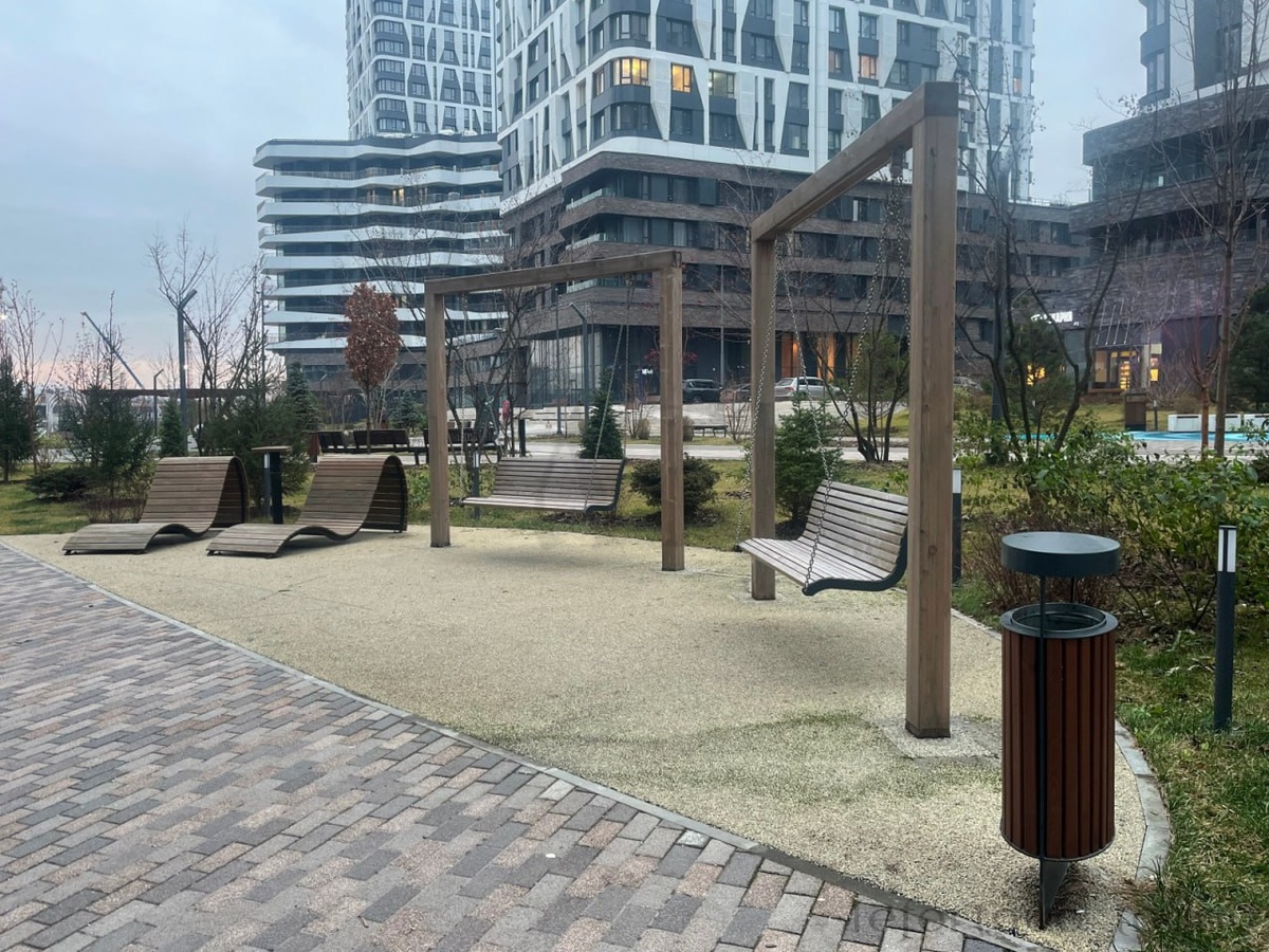В новейшем ЖК оборудованы места для отдыха, где можно найти аккуратные лавочки, качели, культурные урны, газоны, мощеные камнем дорожки и всё остальное, что радует глаз и добавляет уют.