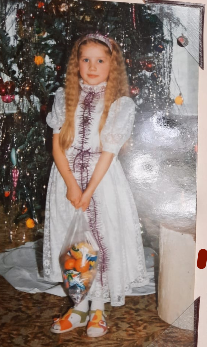 Ладно, не зэки, а зэчки. И не прям сшили, но раскроили. Сути это сильно не меняет, поэтому оставим так. Платье с историей, о которой я хочу рассказать. Итак, внимание на фото. Мне здесь лет 6. Новогодний утренник в детском саду. Клянусь, это был один из самых счастливых дней во всем моем детстве! День, когда я надела это платье! Оо, я чувствовала себя в нем настоящей принцессой! Я помню, как с нетерпением и трепетом наблюдала, как мама его дошивала. Как мерила его несколько раз, стараясь аккуратно надеть и не пораниться об иголки. Так много теплых воспоминаний ) Мы жили достаточно скромно. И не смотря на то, что я была единственным ребенком в семье, что-то именно красивое, а не функционально-нужное, покупалось очень редко. А тут, роскошное платье! И оно для меня! Странно, но его дальнейшую судьбу я не помню. Предположу, что я просто выросла из него, и мама его кому-нибудь подарила. И вот, недавно буквально, мы говорили с мамой. Не знаю как, но разговор коснулся того платья. И