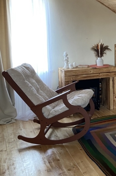 Если убрать из списка сам камин, то кресло-качалка самый функциональный декораторский способ вдохнуть в дом тепло и уют. На протяжении многих веков этот атрибут играет важную роль в интерьере и способствует релаксу и спокойствию. Напоминаю я продолжаю ремонт. В подборке «Дом» ты можешь почитать как всё начиналось. Выбрать нужное из миллиона вариантов не такая лёгкая задача. Мне хотелось огромное кресло , которое отделит гостевую зону от гардеробной, визуально располовинит комнату, подойдёт по цвету и стилю. Стандартные кресла выдерживают 100 кг. А как же туда усадить взрослого дядю например? Могут же ко мне в гости приходить взрослые дяди гипотетически🤣 Короче я нашла на 120 кг с шириной 60. Мой гигант тут. Смотри. На нём можно спать, есть, пить, жить. Оно огромное. Увидишь, закачаешься 🤭 я в нем проросла как говорится. Чехол снимается, дерево можно перекрасить. Но мне удалось подобрать в цвет карту и кувшины. Поэтому у меня оно идеально вписалось. Это будет заметно в следую