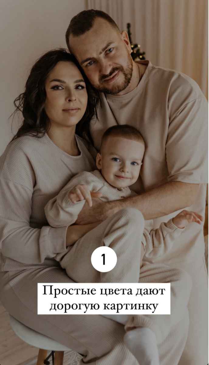 Приближается самое волшебное время года, и, конечно, многие из вас уже задумались о семейной новогодней фотосессии! А главный вопрос, который возникает вслед за этим: «А что же надеть?» Знаю-понимаю! Хочется, чтобы все было гармонично, стильно, и чтобы фотографии потом радовали глаз долгие годы. Есть несколько секретов, которые помогут вам создать ту самую атмосферу сказки и получить по-настоящему незабываемые новогодние снимки. Мои главные советы по выбору одежды для семейной новогодней фотосессии: Гармония, а не одинаковость: Забудьте про «все в одинаковых свитерах»! Куда интереснее, когда одежда всей семьи гармонирует по стилю, цветовой гамме и фактуре. Попробуйте выбрать 2-3 основных цвета, которые будут повторяться в образах у разных членов семьи. Например, если у кого-то есть акцент на бордовом, пусть у другого будет бордовая деталь или носочки. Это создает цельность, но оставляет простор для индивидуальности. Цветовая палитра — основа основ: Для новогодней тематики идеально под
