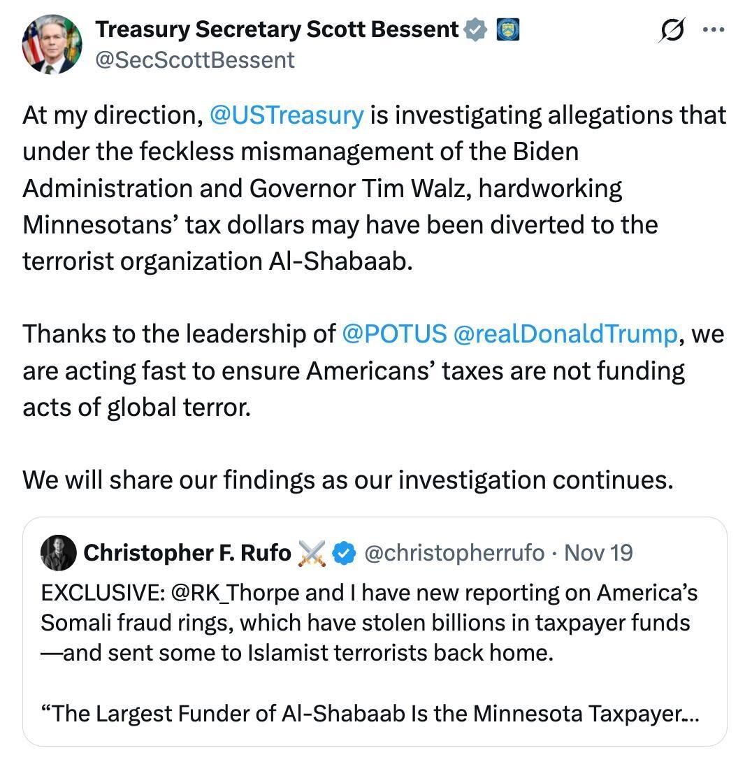 The US Treasury is now investigating reports that Somalis in Minnesota have been sending taxpayer dollars back to Somalia to fund ‘acts of