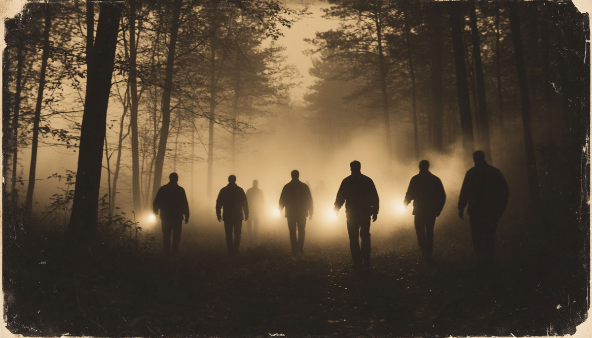 Мы начали звать его. Голоса вели себя странно — звук не распространялся, а будто впитывался лесной подстилкой. Фонари не пробивали темноту дальше десяти метров.