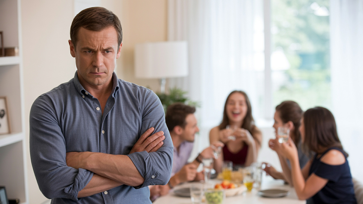 Все замерли. На пороге стоял Андрей – высокий, уставший, с чемоданом в руке. Он смотрел на компанию из шести человек в своей квартире-студии, и лицо его медленно менялось от удивления к полному шоку.