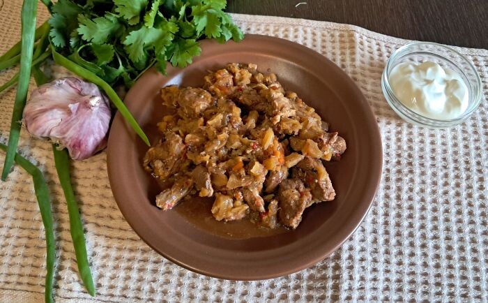 🌿 лавровый лист, соль, специи И, конечно, 🍲 горшок для запекания Пропорции в этом блюде сугубо произвольные, ориентированные на наш вкус и наличие продукта. Главное не пересолить и не перестараться со специями 👇 Подготовка 🥩 Мясо нарезать на кус