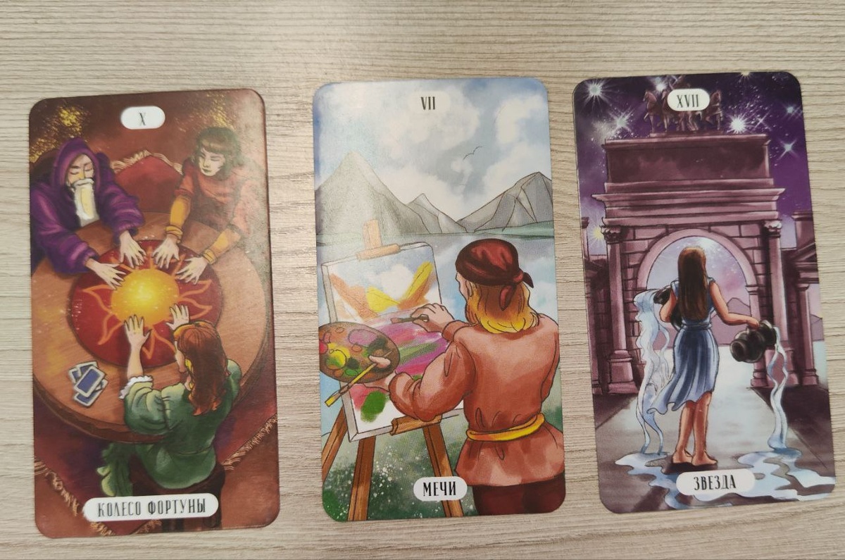 🌟 Карта дня: Двери Таро 🌟 Дорогие друзья, сегодня мы откроем двери в мир Таро и посмотрим, какие сюрпризы готовит нам неделя с тремя удивительными арканами: Колесо Фортуны, Семёрка Мечей и Звезда. Каждый из них несет в себе уникальную энергию и послания, которые могут повлиять на нашу жизнь. Давайте же углубимся в их значения и увидим, как они могут повлиять на нас! 1 карта. Колесо Фортуны 🎡 Положительные стороны: Колесо Фортуны символизирует циклы жизни, изменения и судьбу. Это карта, которая говорит о том, что удача на вашей стороне! В течение недели вы можете ожидать неожиданных, но приятных поворотов событий. Возможно, вам предложат новую работу, или вы найдете способ улучшить своё финансовое положение. 🎉 Отрицательные стороны: Однако, эта карта также предупреждает о том, что жизнь полна взлётов и падений. Не забывайте, что удача может изменить направление в любой момент. Будьте готовы к неожиданным поворотам, которые могут вызвать стресс или неопределенность. 💦 2 карта, Се