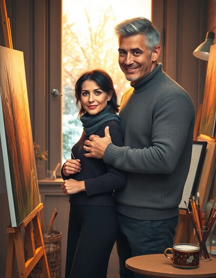 Они стояли так, обнявшись, и смотрели на падающий снег. За окном темнело, но в студии было тепло и светло.