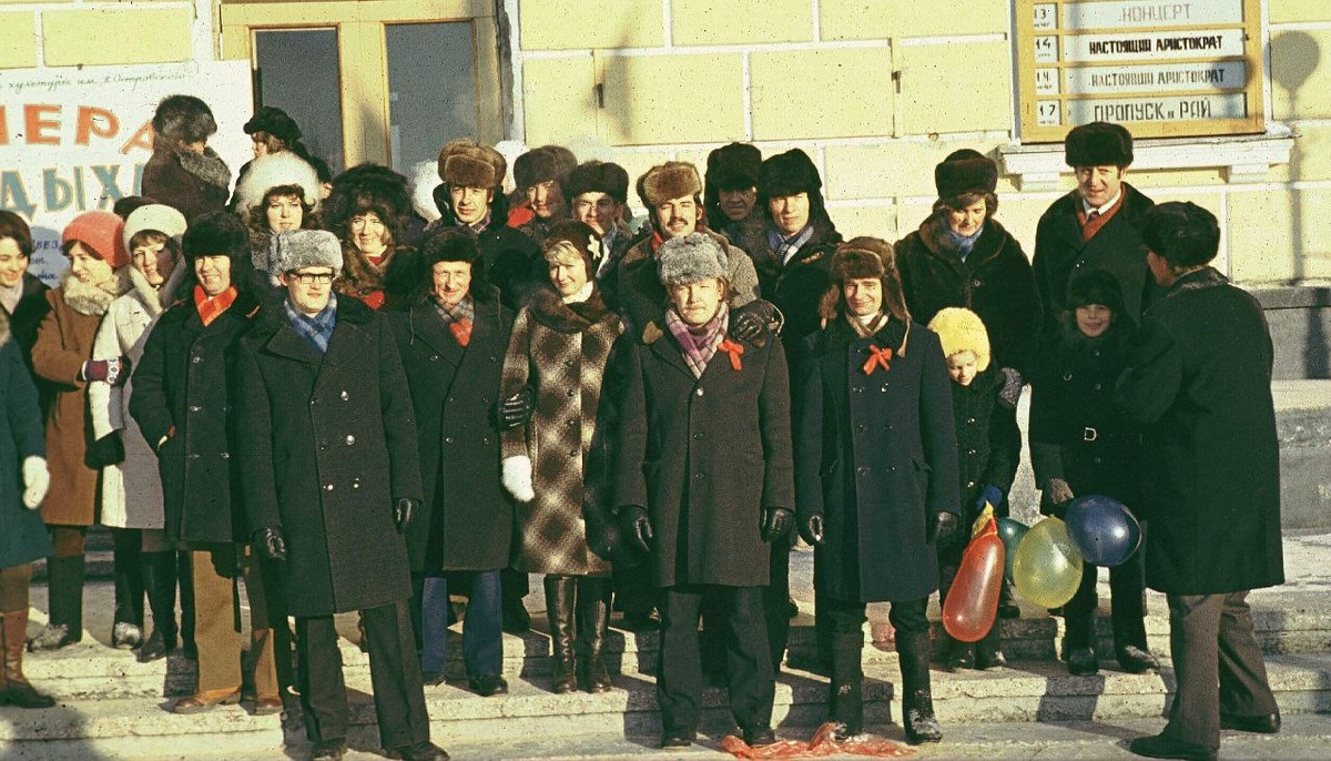 #РетроСеверск 7 ноября 1976 года.. Демонстранты ИВЦ СХК на "конечном" пункте сбора после демонстрации - возле ДК Островского. Фото из фотоархивов Сергея Тарасуна Автор Михаил Васендин