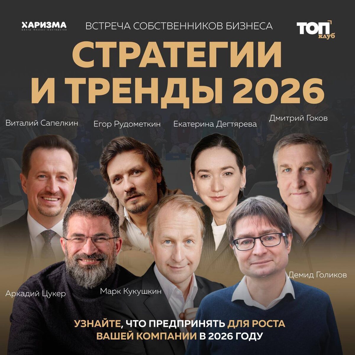 Коллеги, делимся мероприятием, куда идём сами. 3 декабря — закрытая встреча «Стратегия и тренды 2026» для собственников и топ-менеджеров. Рынок меняется быстрее, чем бизнес успевает перестраиваться — лидерам нужна ясность, а не поток новостей. Это пространство прямого разговора: без академичности, с практичными решениями. Каждый год сюда приезжают предприниматели, чтобы услышать тех, кто чувствует рынок и влияет на решения. Спикеры: Аркадий Цукер, Марк Кукушкин, Демид Голиков, Егор Рудометкин, Дмитрий Гоков, Виталий Сапелкин, Екатерина Дегтярева. Что получите: — ключевые тренды 2026 года, — прогнозы и сценарии от экспертов, — рабочие стратегии, — нетворкинг с предпринимателями, мыслящими на 2–3 шага вперёд. Для тех, кто не сможет прийти лично, есть онлайн-формат: трансляция, запись 30 дней и презентации. Узнать подробности и занять свое место: https://clck.ru/3Qbwfh Организатор - Центр бизнес-мастерства "Харизма" - https://t.me/charismaevents