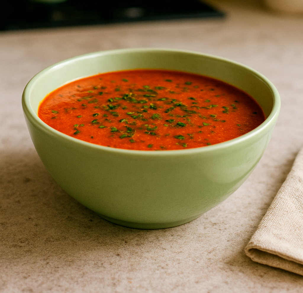 Привет, коллеги-гурманы и просто голодные читатели! А давайте приготовим томатный суп. Мы понимаем, что вроде бы сезон помидоров прошел, ну да и ладно. Помидоры-то с прилавков магазинов не пропали. Этот суп очень прост. Берем: Свежих помидоров - 1 кг Луковица - 1 шт. Чеснок - 2 зубчика Масло оливковое - 2 ст.л. Куриного или овощного бульона - 1 литр, но если так получилось, что нет бульона, берем просто кипяченую воду. Томатная паста - 1 ст.л. Сахар - 1 ч.л. Чёрный молотый перец по вкусу Соль по вкусу Сушёный базилик – 0,5 ч.л. Сливки, сметана и свежая зелень (петрушка, базилик) для подачи Делаем: 1. Помидоры тщательно моем и нарезаем крупными кусками. Лук очищаем и мелко шинкуем. Чеснок очищаем и измельчаем ножом или пропускаем через пресс. 2. В кастрюле с толстым дном разогреваем оливковое масло на среднем огне. Добавляем лук и чеснок. Надо добиться их прозрачности и мягкости, избегая подгорания. Это занимает около 5-7 минут при постоянном помешивании. 3. К луку и чесноку добавляем