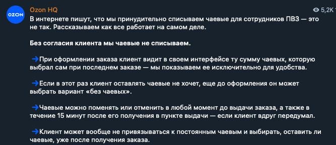 Ozon выложил разъяснение по чаевым — но стало только запутаннее