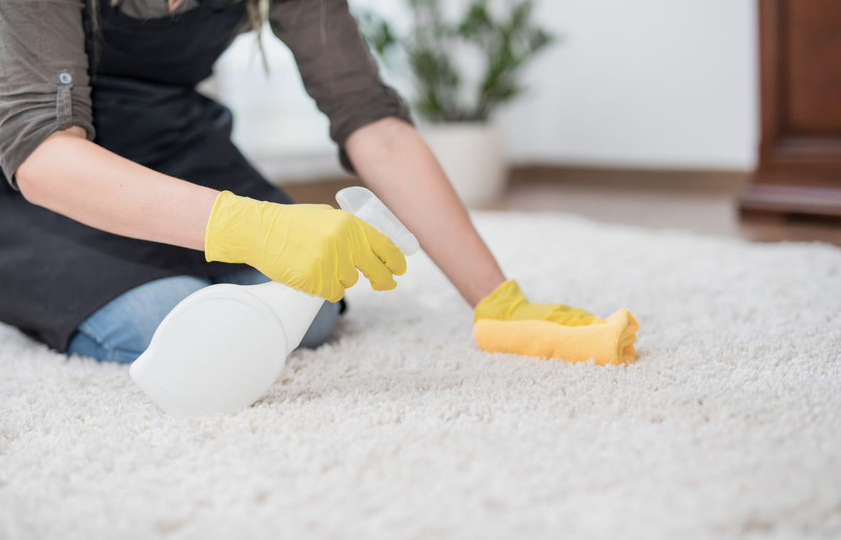 Ничего агрессивного: без хлорки, отбеливателей и сильных щёлочей — они портят ворс и краску ковра.