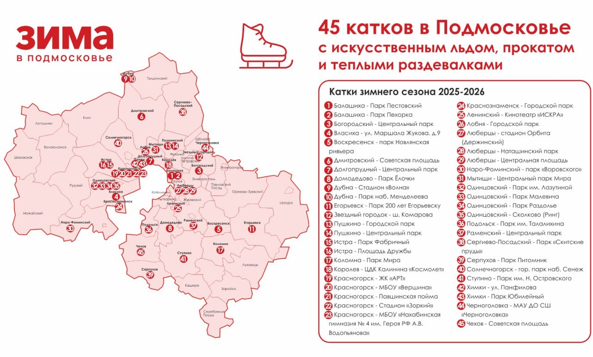Текст и фото: Телеграмм канал "Из Москвы на выходные". С наступлением зимы!😊 ... Правда, зима в этом году начинается без снега, но не беда! Если вы желаете покататься на коньках, вот карта катков с искусственным льдом! Забронировать сеанс катания можно по ссылке. )) Благодарим за материал замечательный Телеграмм канал "Из Москвы на выходные". На сайте РЖД Тур есть настоящий конструктор путешествий выходного дня. Придумывайте, конструируйте и ... путешествуйте! ))) Праздник уже совсем скоро, напоминаем, что на нашем сайте еще можно успеть забронировать сказочные Новогодние поезда! ))) И не забудьте подписаться на наш Дзен, где вас ждет увлекательная информация о туристических круизах, размышления специалистов в области пассажирских перевозок, иные экспертные мнения, подробные описания экскурсионных программ, красивые фотографии и видео. Вся гамма наших туристических предложений — более 100 готовых туров — доступна для вас на сайте «РЖД Тур» 24/7. Мы в ВК, Дзен и Телеграмм.