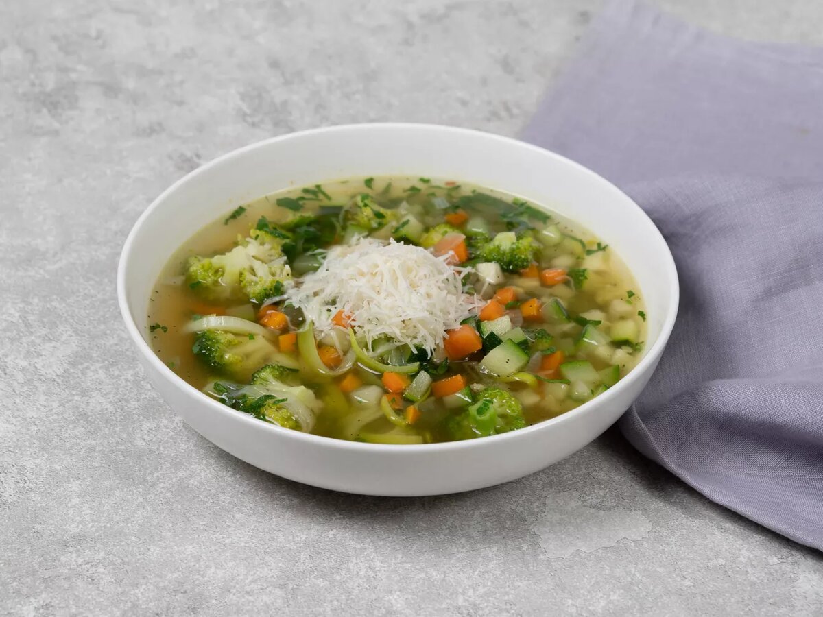 Хотите приготовить полезное и сытное блюдо, которое зарядит энергией на весь день? Тогда этот овощной суп-пюре из брокколи идеально подойдет вам. Это простое и быстрое блюдо станет отличным выбором для тех, кто следит за своим здоровьем и фигурой. Оно богато витаминами и минералами, благодаря чему улучшится общее самочувствие и повысится иммунитет. Ингредиенты: Вода – 1 литр Картофель – 2 штуки Морковь – 1 штука Чеснок – 2 зубчика Цуккини – 1 маленький Брокколи – 400 грамм Оливковое масло – 2 столовые ложки Свежая зелень (петрушка, укроп) Соль, черный молотый перец – по вкусу Куркума – щепотка (для цвета и аромата) Инструкция по приготовлению: Шаг 1: Подготовка овощей Начнем с подготовки овощей. Тщательно промойте картофель, морковь и цуккини. Затем очистите их и нарежьте небольшими кубиками. Чеснок мелко порубите ножом. Шаг 2: Варка овощей Возьмите кастрюлю среднего размера, налейте воду и доведите её до кипения. Добавьте нарезанные овощи и варите около 15 минут до мягкости картоф